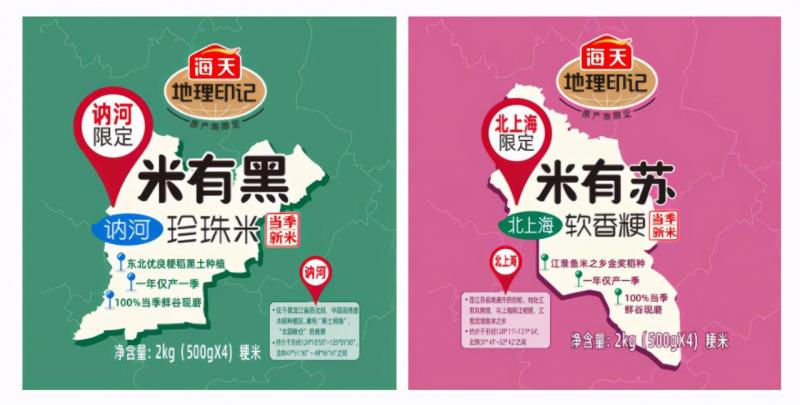 農業行業觀察發現,海天味業此次推出的大米產品為地理印記系列,按地域劃分為“米有桂”、“米有蘇”等6款原產地限定大米,種類包括訥河珍珠米、北上海軟香米、象州絲苗米、雙鴨山富硒長粒米、宿遷江淮油粘、寧河小津貢,分別以不同的外包裝顏色做出區分。