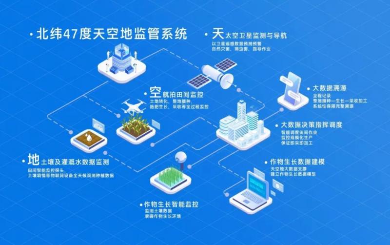 除了發(fā)力現(xiàn)代農(nóng)業(yè)托管模式之外,未來,「北緯47度」還將計劃用3-5年建設(shè)以農(nóng)業(yè)大數(shù)據(jù)決策指揮中心為核心,以“天空地”信息采集體系、標(biāo)準(zhǔn)化種植管理體系、種植全流程溯源體系等為支撐的數(shù)字農(nóng)業(yè)方式,推動?xùn)|北農(nóng)業(yè)產(chǎn)業(yè)帶高質(zhì)量發(fā)展。