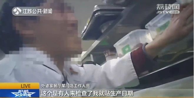 為了防止被上級部門查到這一現象,導致餐廳被扣分,每次得到檢查通知,他都會在放菜的盒子上,貼上當天生產的標簽,把剩菜標注成新鮮菜。