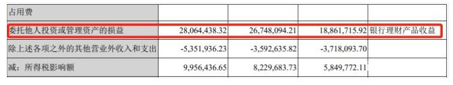 而年報顯示,2018年,克明面業用于銀行理財產品的收益為2806萬元;而此前2017年、2016年,銀行理財產品收益分別為2675萬元、1886萬元。截至2018年末,公司累計收到的銀行存款利息、含理財收益扣除銀行手續費等凈額為7336.97萬元。
