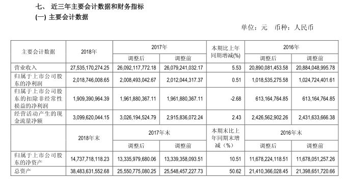 2018 年,通威股份實現營收 275.35 億元,同比增長 5.53% ;歸屬于上市公司股東的凈利潤 20.19 億元,同比增長 0.51% 。其中,農牧業務實現營收 168.16 億元,同比增長 3.66% 。