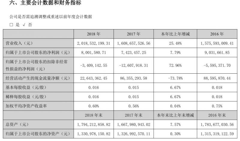2018 年,金字火腿實現營業收入 4.26 億元,同比增長 14.58%;凈利潤為 -842.99 萬元,同比下降 107.81% 。其中,火腿肉制品板塊主營業務收入 1.81 億元。報告期內,公司經營活動產生的現金凈流量與本年度凈利潤存在重大差異的原因,主要系報告期內原材料采購支出增加以及收到的經營性往來款減少所致。