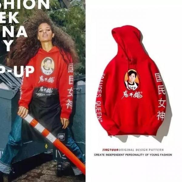 現在的“老干媽”,已不再是一瓶簡單的辣醬,成為了國潮時尚的代表,甚至在海外成了“奢侈品”。2018年9月10日,在紐約時裝周聯合Opening Ceremony推出 Logo衛衣。
