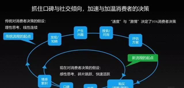 新一代消費者的需求與決策正因如此,吳曉波才喊出了“不做社群,我們將無商可談”;正因如此,社交電商才能大行其道;正因如此,新零售的模式才博得眾商家的擁躉和追隨!根源在于此!所以傳統和現代的消費者決策假設,已經完全顛覆了!傳統消費者決策流程:發現知曉、產生興趣、搜索詢問、評估方案,貌似是理性思考,線性連續的;現代消費者決策流程:購買嘗鮮、優質體驗、口碑擁護、情感積累,是完全感性的,碎片化跳躍,快速活躍的
