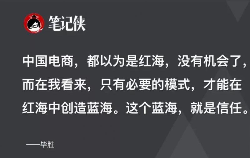 2019年元旦當天,畢勝給必要同事的新年內部信中有這樣一段話:中國電商,都以為是紅海,沒有機會了,而在我看來,只有必要的模式,才能在紅海中創造藍海。這個藍海,就是信任。