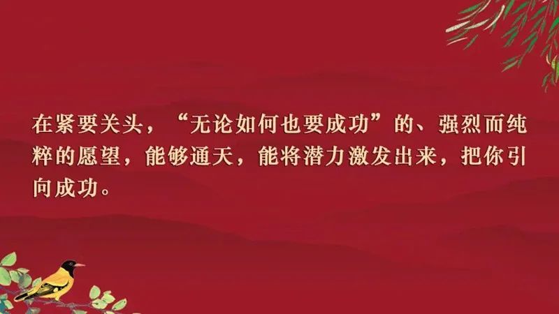 在緊要關頭,“無論如何也要成功”的、強烈而純粹的愿望,能夠通天,能將潛力激發出來,把你引向成功。