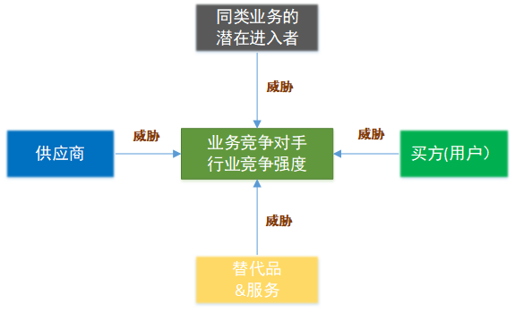 4、波特五力模型:競爭者的競爭能力、潛在競爭者進入的能力、替代品的替代能力、供應商的討價還價能力與購買者的議價能力,即競爭者、新進入者、替代品、供應商和用戶五個部分。
