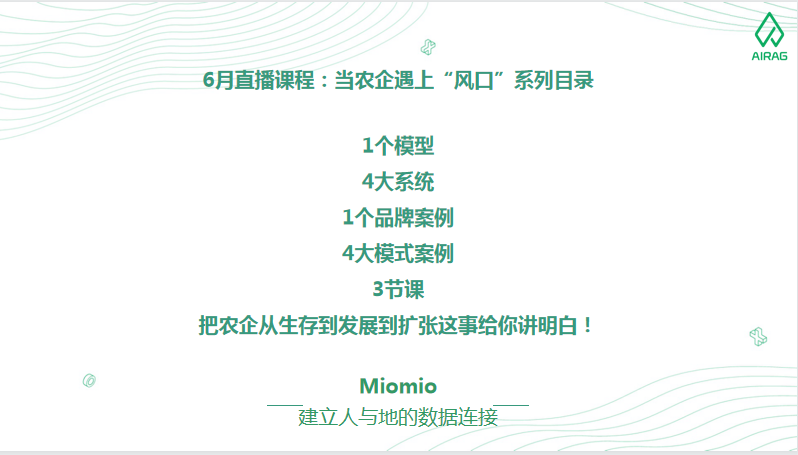 為了更好解密大氣候賦能農業、打造農產品品牌的切入點及方法論,農業行業觀察聯合大氣候集團開設以“當農企遇上‘風口’系列目錄”為主題3堂干貨級且實戰性強的直播課程,希望一起推動互聯網+農業的新商業、新機會...