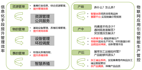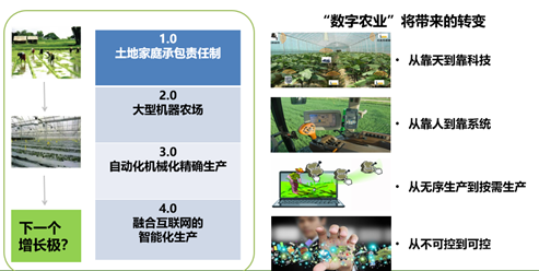 傳統農業通過摸索出來的經驗去這個發展,數字化農業增加了很多生產過程的控制。比如養殖行業,養殖業務線細胞需要控制哪些過程,需要控制采食量、蛋白質的攝入量、溫度等。
