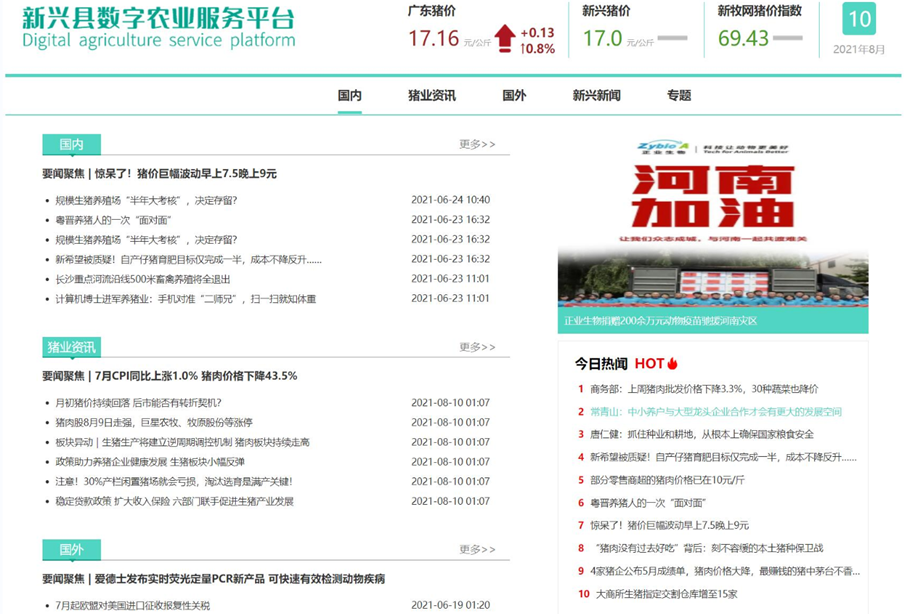 試點構建縣域數字農業綜合服務平臺,充分發揮數據基礎資源和創新引擎作用;試點建設生豬產業數字化項目,示范建設生豬智慧養殖模式。