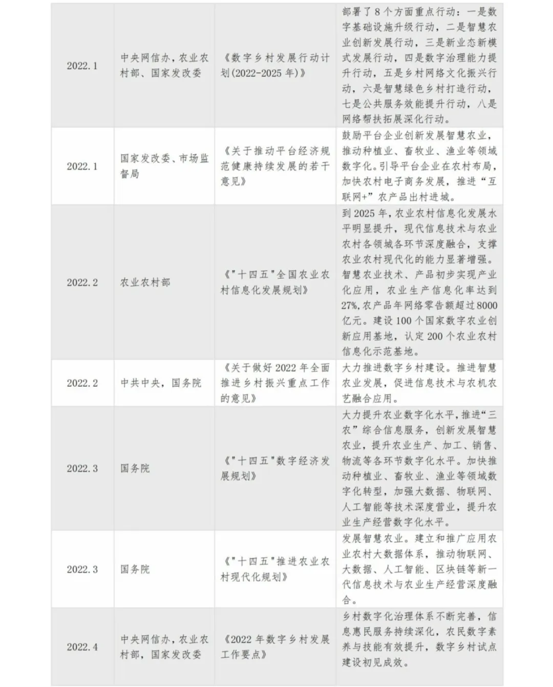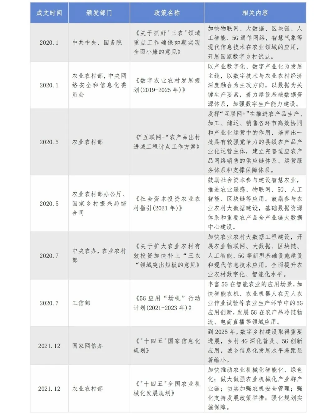 多年來,“一號文件”多次提到了“精準農業”、“智慧農業”等關鍵詞。在2012年的“一號文件”中,首次提出了全面推進農村農業信息化的重要性。2015年的“一號文件”將農業現代化列為首要議題。2018年的“一號文件”將智慧農業與鄉村振興緊密聯系在一起。而到了2022年,繼續推進鄉村振興工作,以大數據和互聯網為支撐,加速數字農村的發展,促進智慧農業的進一步推進。這些政策的制定體現了該地對智慧農業發展的高度重視程度,極大地推動了智慧農業的快速發展。