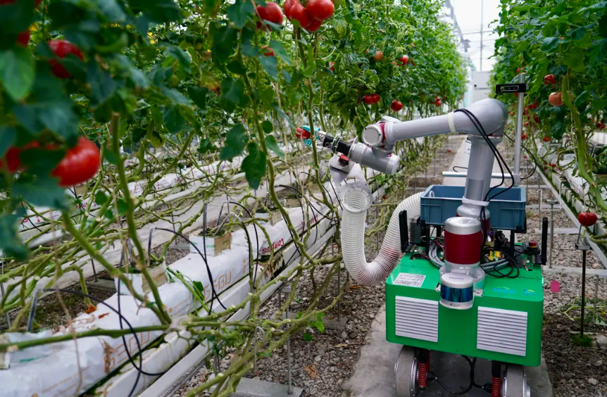 農業機器人是指在農業生產中應用自動化和機器智能技術的機器人設備。目前,農業機器人已經廣泛應用于田間作業、種植管理和收獲等環節。例如,自動駕駛的拖拉機可以實現土地的自動耕種和田間管理,無人機可以進行植株監測和施藥。另外,還有一些農業機器人可以實現作物的自動采摘和收獲。農業機器人的發展不僅提高了生產效率,還減少了勞動力成本和勞動強度。