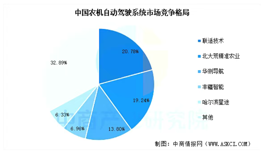 我國農機裝備智能化產品的早期市場以國外品牌為主,2019年后國產企業才逐漸成為農機自動駕駛系統的市場主導并完成了國產替代。隨著國家高度重視農業科技現代化發展以及農機裝備智能化產品不斷優化升級,行業迅速發展,參與企業也越來越多。以農機自動駕駛系統為例,以購置補貼計,國內農機自動駕駛系統市場公司數量由2019年的31家發展到2022年的58家,但市場集中度呈上升趨勢,行業銷量排名前三企業合計市場份額由2019年的47.39%提高到2022年的53.82%。