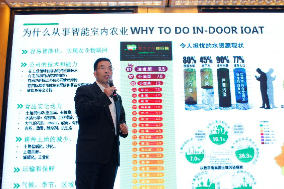 盛生物科技(上海)有限公司周華方博士在論壇中,就國內科技農業所面臨的問題以及科技農業在中國的發展方向做了深入而全面的介紹,周博士在國外從事研究工作多年,有著豐富的理論基礎和深入的問題分析邏輯思維,通過詳細的數據對比,生動全面地指出中國發展科技農業的必要性。愛盛生物科技(上海)有限公司對于科技農業耕耘多年,依托美國NASA認可的氣霧培種植技術,并結合農業大數據信息處理和云計算技術進行產業創新,從而成為行業的先行者和新農業的實踐者。并提供高效、易擴展的整廠解決方案,廣泛應用于中草藥、蔬菜、花卉等植物的規模化種植。