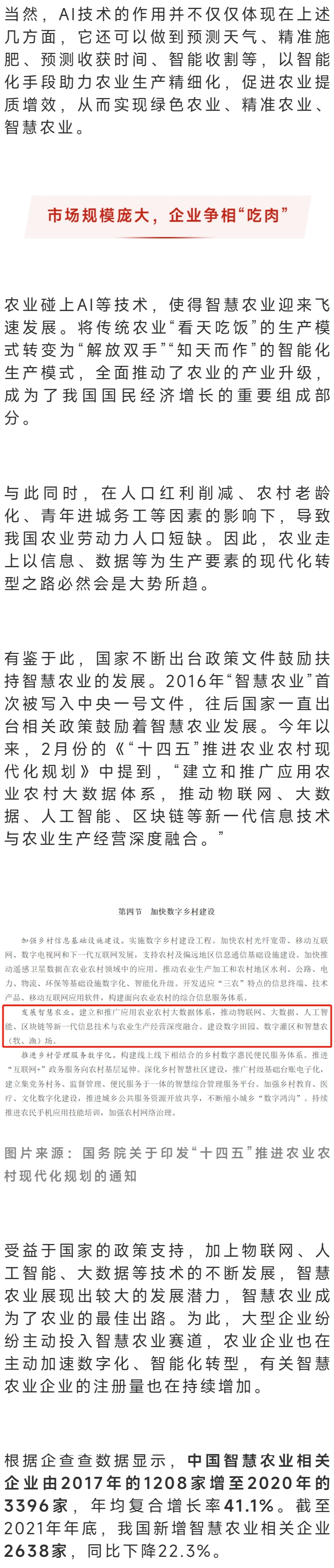 近些年來,AI技術的發展風生水起,醫療、家居、交通、制造業、金融等領域隨處可見其身影,應用場景也越來越加多元化。而作為我國國民經濟的基礎,當農業遇上AI,也碰撞出了不一樣的智慧火花。