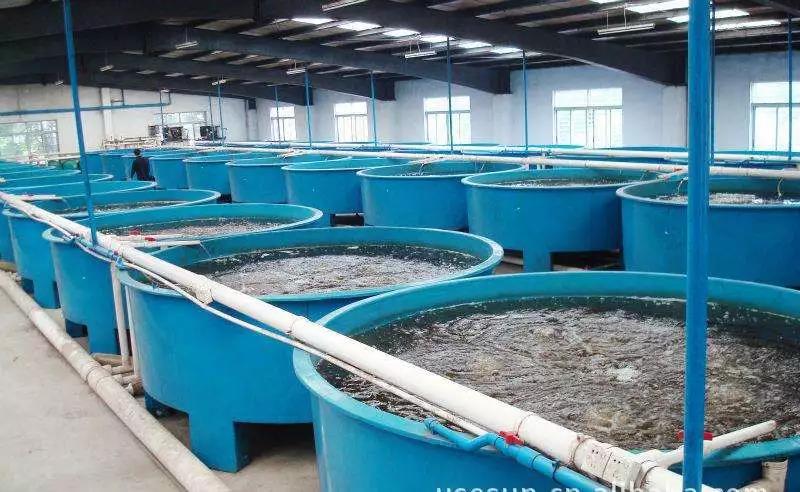 工廠養殖在室內海水池中采用先進的機械和電子設備控制養殖水體的溫度、光照、溶解氧、pH值、投餌量等因素,進行高密度、高產量的養殖方式。