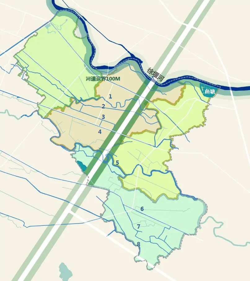 我們分片區來看,會看的更加清晰:這個片區以農業生產為主,分散的條狀用地與農業很好的結合,再加上綠城成熟的農鎮住宅產品體系,讓建設用地變成片區的配套,而不是相互之間的孤立。