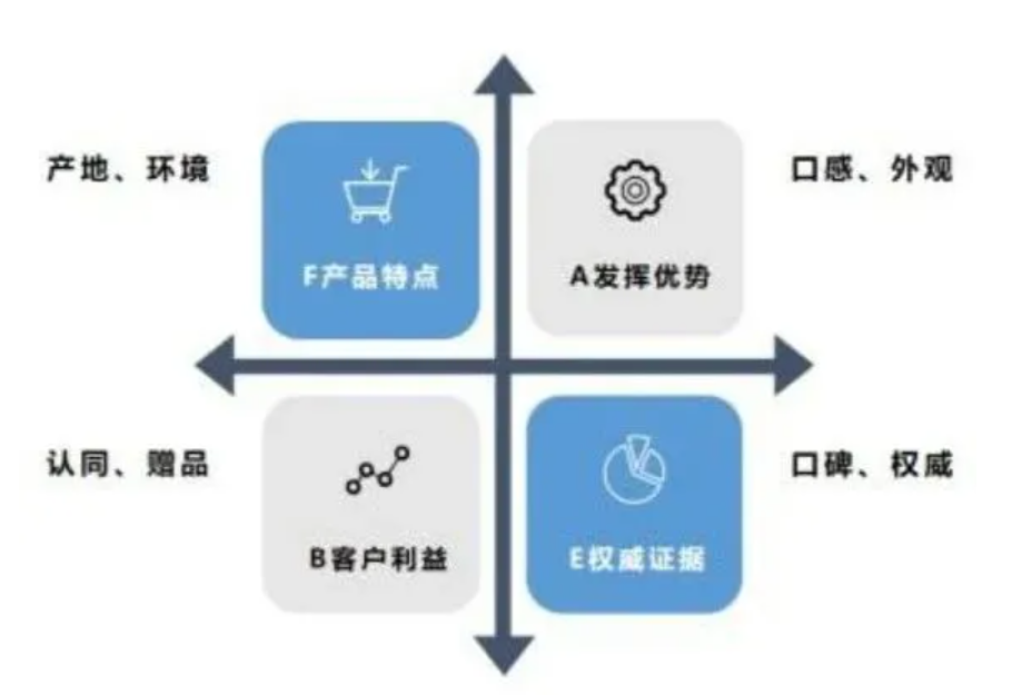 比如農產品賣點挖掘,了解它有助于降低農產品滯銷風險。首先介紹一下FABE銷售模式,它是由美國奧克拉荷大學企業管理博士、臺灣中興大學商學院院長郭昆漠總結出來的。此銷售模式具體、有高度、可操作性強。它通過四個關鍵環節,巧妙地處理好了顧客關心的問題,從而順利地實現產品的銷售。