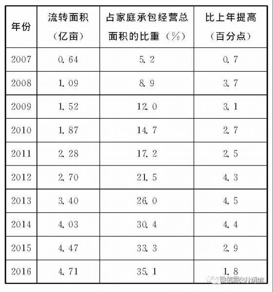 表3 中國土地流轉的基本情況(2007~2016年)