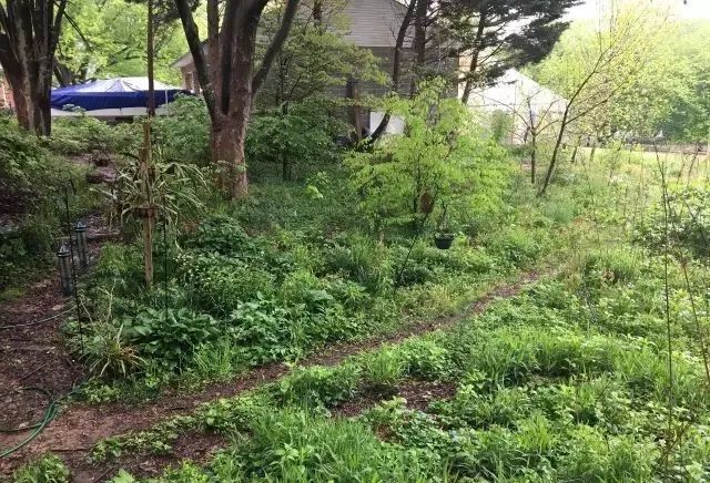 森林生態(tài)農(nóng)場(chǎng)第二年,雜草自然生長(zhǎng),幫助恢復(fù)土壤。