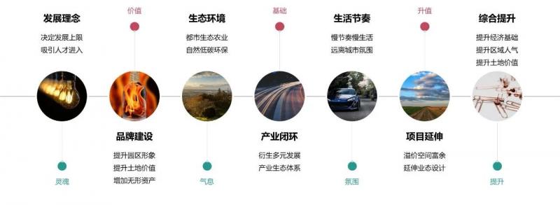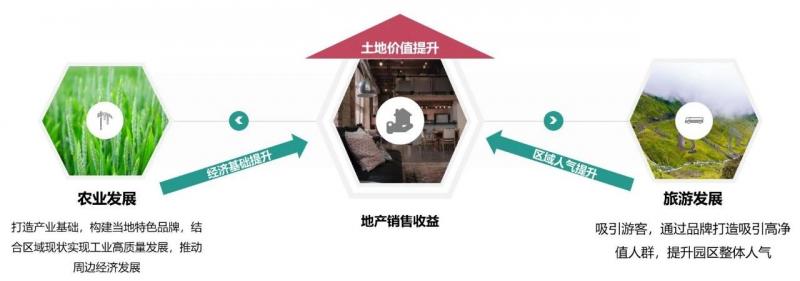 通過農業發展打造產業基礎,構建當地特色品牌,結合區域現狀實現工業高質量發展,推動周邊經濟發展提升;通過旅游發展吸引游客,打造品牌吸引高凈值人群,提升園區整體人氣。