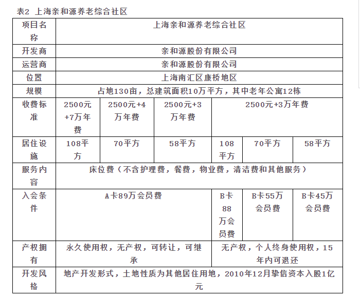 運營情況:親和源股份有限公司開發(fā),2005年投入運營,發(fā)展較為成熟,目前有1000多名老人入住,已在海南三亞、遼寧營口、浙江海寧、浙江寧波等地通過控股或參股的形式實現(xiàn)初步擴張。