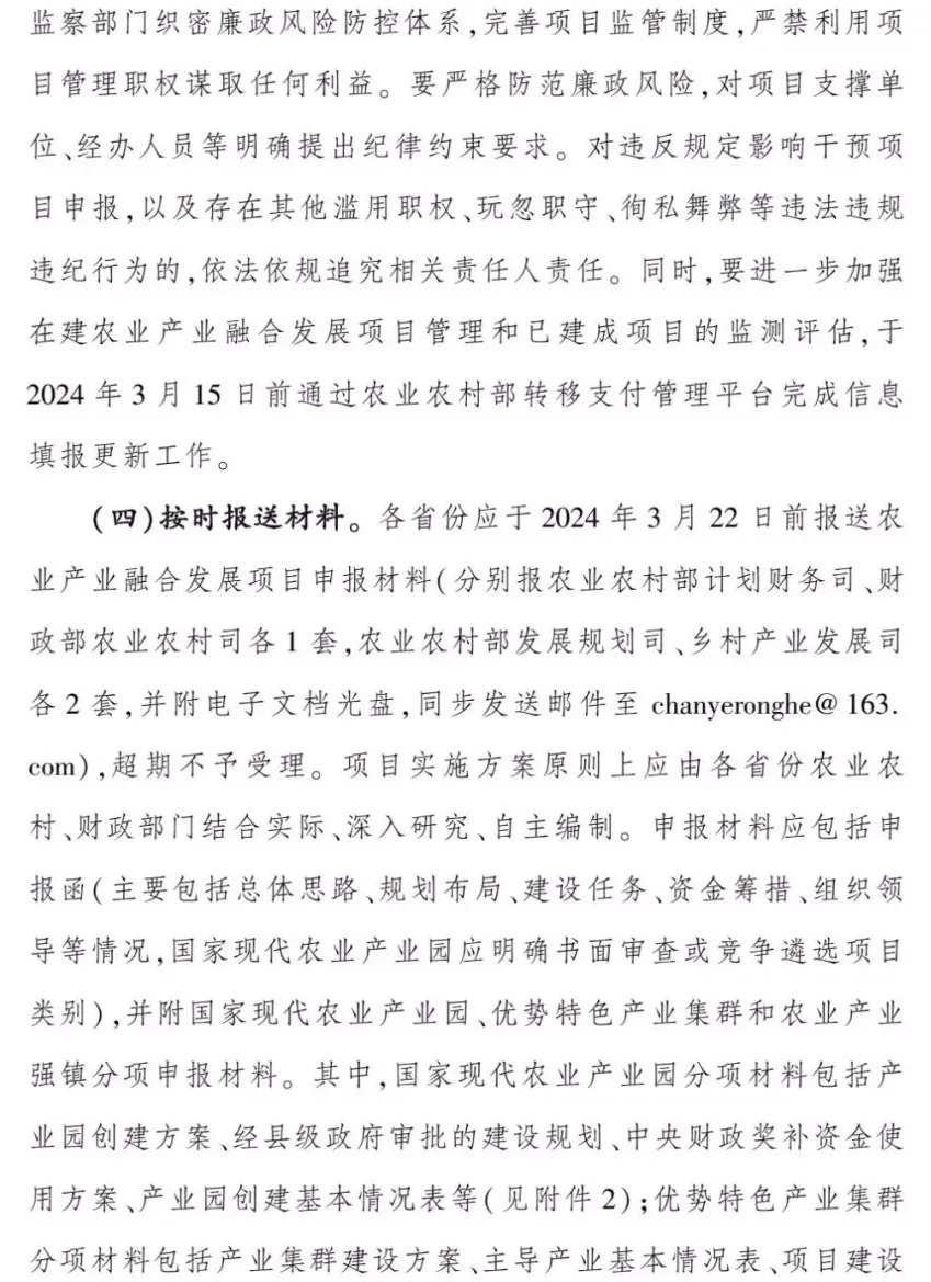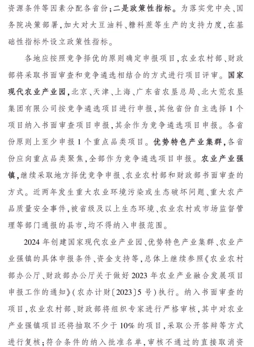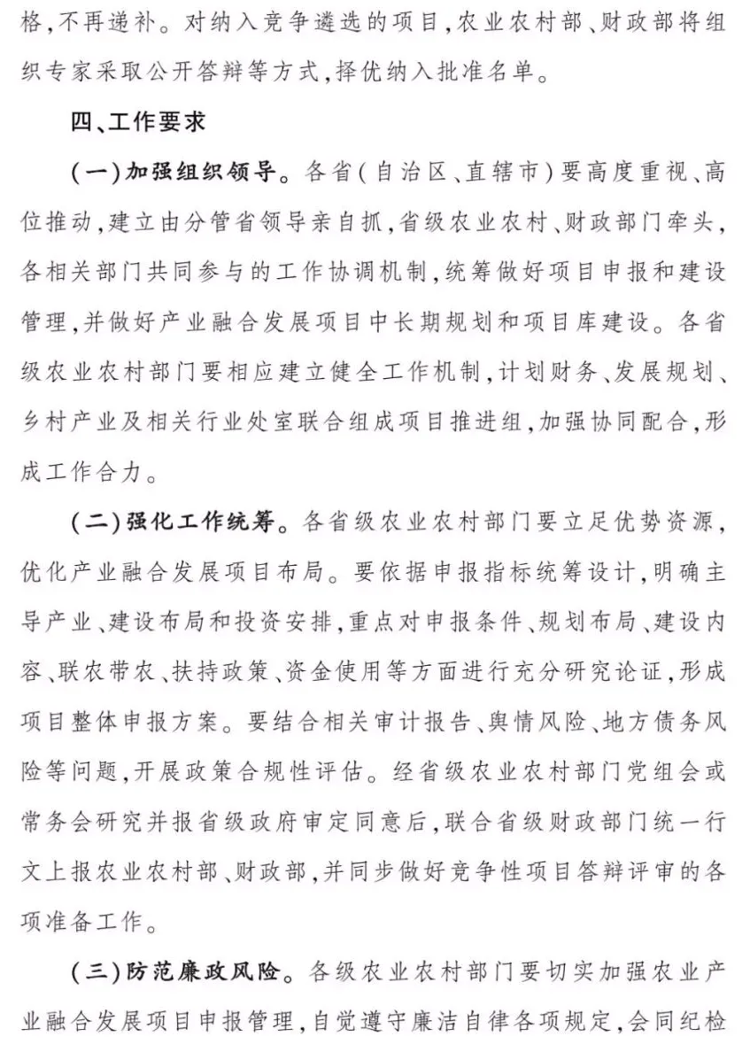 為更好發(fā)揮中央財(cái)政資金使用效益,引導(dǎo)和撬動(dòng)更多資源要素向鄉(xiāng)村匯聚,促進(jìn)鄉(xiāng)村產(chǎn)業(yè)全鏈條升級(jí),提升鄉(xiāng)村產(chǎn)業(yè)發(fā)展水平,農(nóng)業(yè)農(nóng)村部、財(cái)政部2024年繼續(xù)統(tǒng)籌推進(jìn)農(nóng)業(yè)產(chǎn)業(yè)融合發(fā)展工作,具體申報(bào)通知如下: