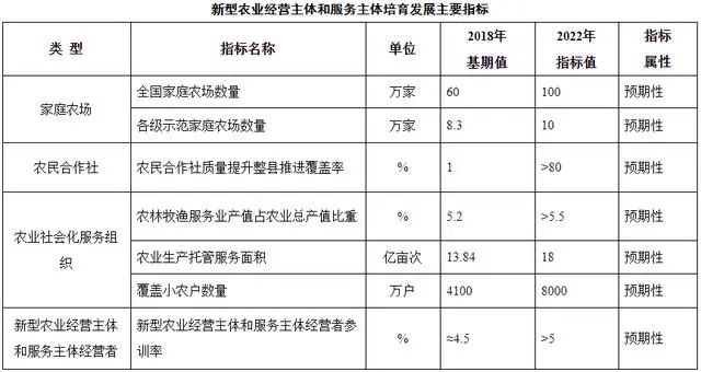 《規(guī)劃》明確,到2022年,各級(jí)示范家庭農(nóng)場(chǎng)達(dá)到10萬家,農(nóng)民合作社質(zhì)量提升整縣推進(jìn)基本實(shí)現(xiàn)全覆蓋,農(nóng)業(yè)社會(huì)化服務(wù)組織基本形成服務(wù)結(jié)構(gòu)合理、專業(yè)水平較高、服務(wù)能力較強(qiáng)、服務(wù)行為規(guī)范、覆蓋全產(chǎn)業(yè)鏈的農(nóng)業(yè)生產(chǎn)性服務(wù)體系。