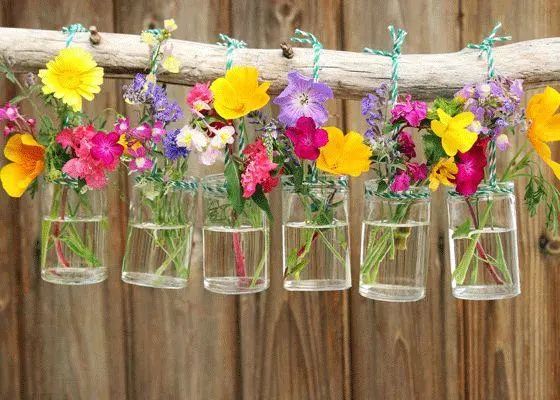 叮叮當當掛在樹上的精致玻璃瓶,一樣可以裝點也鮮花們,成為美麗的風景。