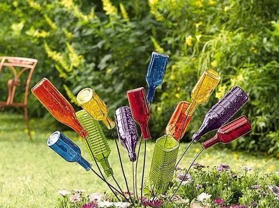 彩色玻璃瓶可以是農場里永開不敗的花。