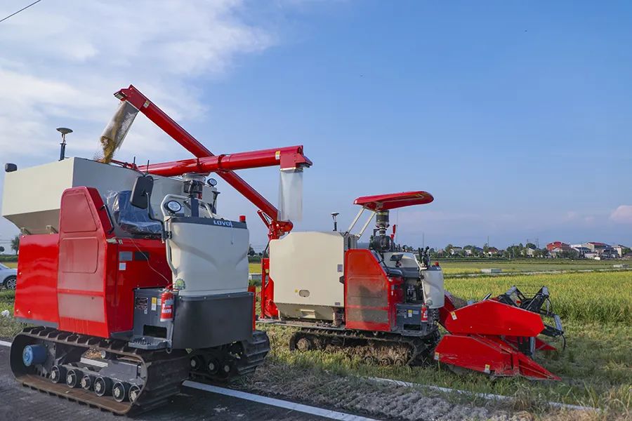 圖為湖南長沙市望城區高塘嶺街道新陽村全能農機專業合作社無人農場內,一臺無人駕駛的收割機自動把糧食卸到指定運糧車上。該農場是全國首個全程機械化無人農場,這是其首次收割水稻。 來源:湖南省人民政府網站