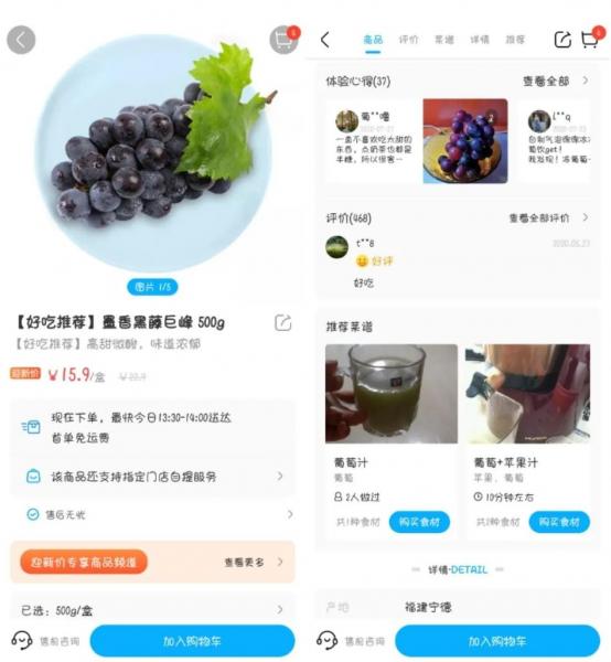 小結:盒馬鮮生由于在商品頁包含較多內容,因此需要考慮各部分信息的質量和順序,以達到價值最大化的展示效果。