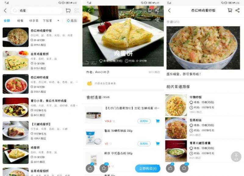 “菜譜”功能提供了一站式采購方式,對空閑時間較少的城市白領來說,在這里不需要繁瑣的操作流程,就能實現周末自己制作美食的需求,同時該功能也增強了平臺的社區屬性,在提高用戶粘性方面有一定效果。