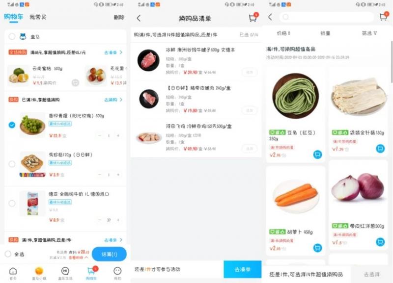 小結:盒馬鮮生的購物車功能展示不夠清晰簡潔,增加了用戶的閱讀壓力,需要進行相應優化,如將參與換購商品與非換購商品分開,或按照金額判斷能否參加換購。另外換購的商品需要選擇比較有賣點的商品,否則無法有效吸引用戶參與換購。