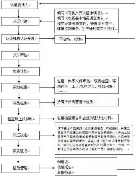 企業或合作社可以向有機認證機構提出申請,機構對企業提交的申請進行文件審核,如果審核通過則委派檢查員進行實地檢查并進行形式檢查,進行頒證決議和制證發證。