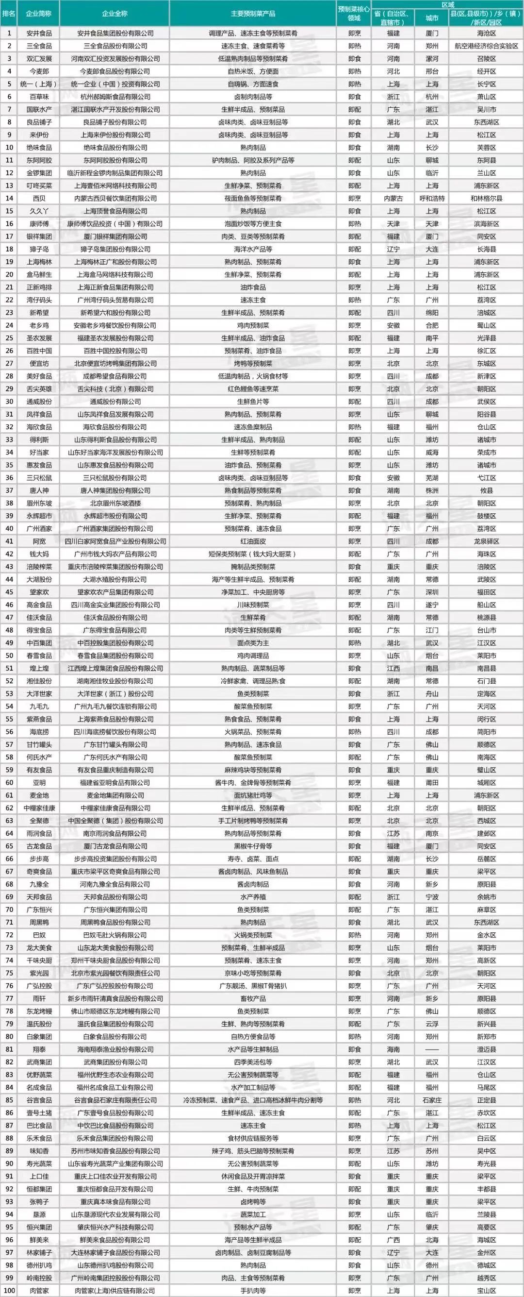 附錄:2023年預制菜企業競爭力100強企業