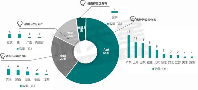從預制菜百強企業省(自治區、直轄市)分布來看,廣東、上海、山東分布數量較多,分別為17家、12家和11家。