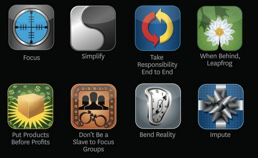 喬布斯早期的導師麥克·馬庫拉1979年寫給喬布斯一份備忘錄,其中列舉了三個原則,前兩個是“投入”和“專注”,而最后一個是有些令人尷尬的“善于暗示”(消費者的購買欲)。