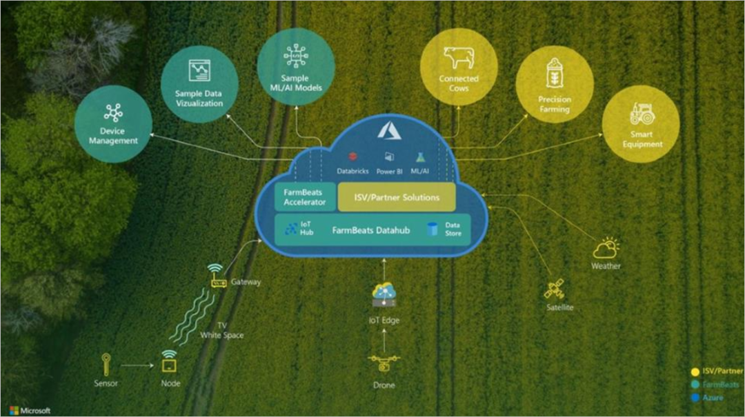 微軟旗下的Azure FarmBeats是Azure Marketplace中提供的企業到企業產品/服務。它允許跨提供商聚合農業數據集。借助 Azure FarmBeats,你可以基于融合的數據集構建人工智能 (AI) 或機器學習 (ML) 模型。通過使用 Azure FarmBeats,農業企業可以將精力集中在核心價值而非無差別的數據工程工作負荷上。