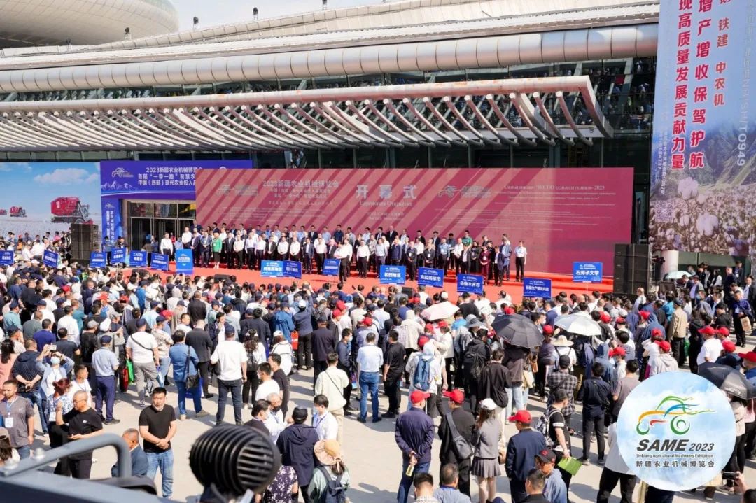 2023新疆農業機械博覽會、首屆“一帶一路”智慧農業論壇、中國(西部)現代農業投入品展覽會于5月25上午11:00在烏魯木齊市新疆國際會展中心盛大啟幕。 出席本屆博覽會開幕式的嘉賓有:自治區人大常委會副主任迪力夏提·柯德爾汗同志;自治區人民政府副主席麥爾丹·木蓋提同志;自治區政協副主席艾則孜·木沙同志;新疆生產建設兵團黨委常委、副政委劉新建同志;中國工程院院士、新疆農機學會理事長陳學庚教授;中國工程院院士、自治區科協主席鄧銘江教授;農業農村部農業機械化總站副站長徐振興同志及博覽會主辦方負責同志,有關省區市農業農村部門負責同志,中國農大、中國農科院、中國農機院有關負責同志,自治區黨委組織部、自治區農業農村廳、兵團農業農村局、財政廳、審計廳、發改委、自治區科協、新疆貿促會、新疆農大等有關廳局單位負責同志,濰柴雷沃、中國一拖、江蘇沃得、新研股份、約翰迪爾、愛科集團、凱斯紐荷蘭等國內外企業家代表。本次開幕式由新疆維吾爾自治區農業農村機械化發展中心黨委書記、一級巡視員謝國政主持,中國農業機械流通協會會長范建華同志;自治區農業農村廳黨組副書記、廳長艾合買提·買買提同志;江蘇沃得農業機械股份有限公司總經理朱林軍先生;俄羅斯農場和農業合作社協會理事會主席馬克絲莫娃·斯威特娜拉女士;新疆生產建設兵團黨委常委、副政委劉新建同志分別致辭。上午11點35分,自治區副主席麥爾丹·木蓋提同志講話并鄭重宣布“2023新疆農業機械博覽會,首屆“一帶一路”智慧農業論壇、中國(西部)現代農業投入品展覽會盛大開幕!”