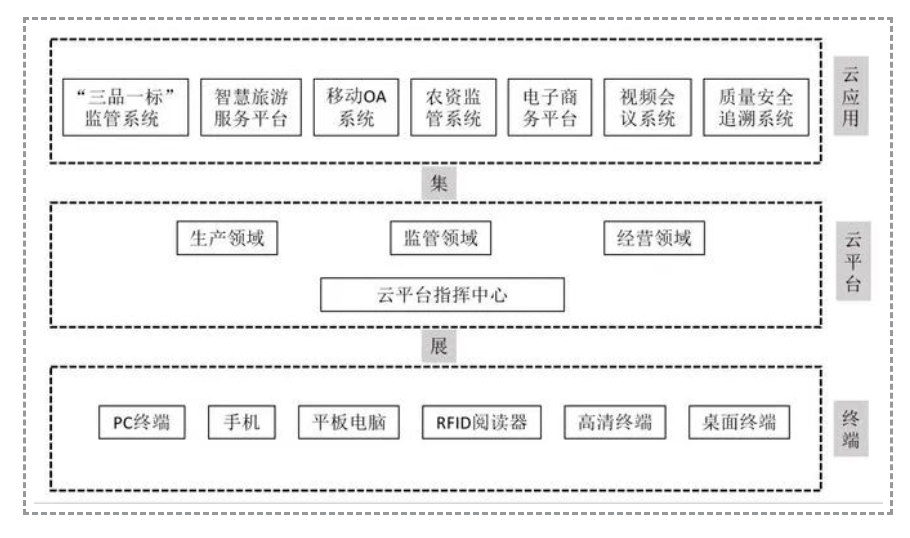 農(nóng)產(chǎn)品質(zhì)量安全可追溯體系,以無線射頻和二維碼技術(shù)為支撐,對農(nóng)產(chǎn)品監(jiān)測信息、農(nóng)事記錄、生長環(huán)境信息、農(nóng)殘檢測記錄、綜合健康指數(shù)、物流信息等進(jìn)行收集,通過全程記錄各個環(huán)節(jié)的質(zhì)量安全信息并及時(shí)反饋給消費(fèi)者,保障智慧農(nóng)業(yè)園區(qū)食品安全,贏得消費(fèi)者信賴。結(jié)合園區(qū)的“三品一標(biāo)”監(jiān)管系統(tǒng),加速促進(jìn)智慧農(nóng)業(yè)園區(qū)形成區(qū)域示范品牌。