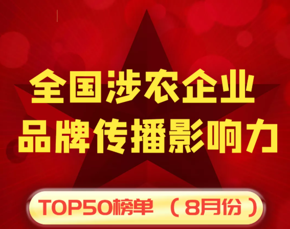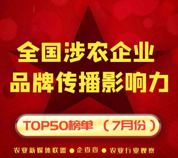 近日,由農業新媒體聯盟、企查查、農業行業觀察聯合發布的2020年12月“全國涉農企業品牌傳播影響力TOP20榜..